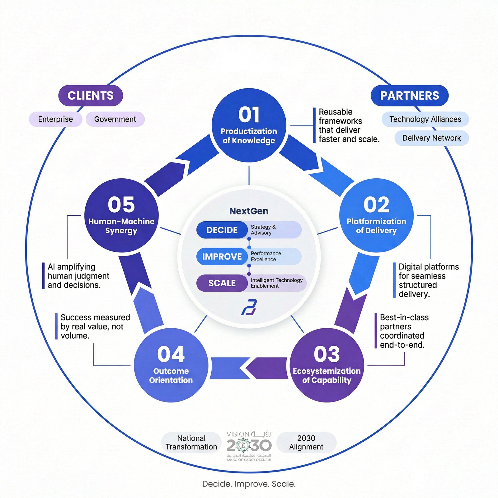 NextGen Consulting integrates strategy, execution, technology, and partnerships into one unified system — designed to deliver clarity, speed, and measurable outcomes at scale.